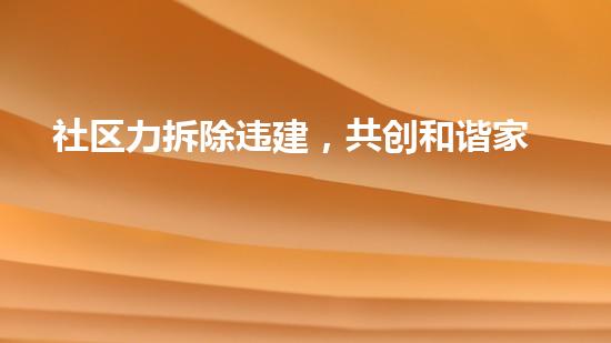 社区力拆除违建,共创和谐家园是一个长期的工作。它需要全民参与,不断完善和提高。作为拆除行业专家,在实施拆除过程中,需要注重技术手段的不断提高和创新,同时,要加强环保意识和后续处理的重视。希望通过本文的阐述,能够让更多人了解社区力拆除违建的重要性,并积极参与到这个工作中来。