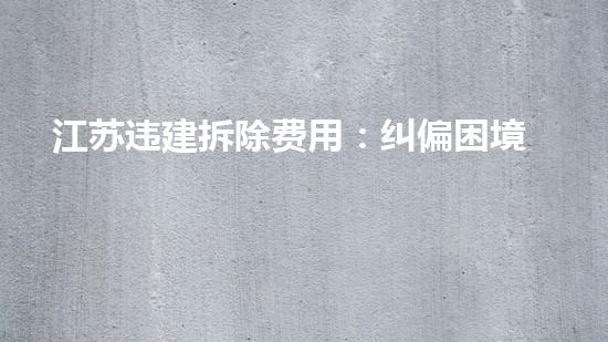 江苏是中国经济发展最快的地区之一,然而,由于历史原因以及与城市规划不符的建设,许多违建问题也随之而来。在江苏,违建拆除费用已成为亟待解决的问题。本文将从拆除行业专家的角度出发,深入探讨江苏违建拆除费用的纠偏困境与必要支出。