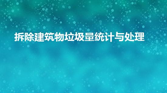 统计是指对拆除建筑物垃圾生成的量进行测算和记录。统计垃圾数量可以帮助相关人员掌握拆除工程的情况,了解垃圾的特点和种类,为垃圾的处置提供依据。统计的方法有多种,其中比较常用的是现场勘测和预测模型两种。