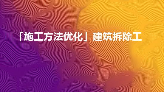 “施工方法优化”建筑拆除工作是一项十分重要而迫切的任务,这种方法可以使拆除工作更加效率高、更加环保节能、更加安全可靠。在工程实践中,我们可以采用一些新型的拆除工具和技术,例如水刀切割技术等,来进一步提升拆除效率和工作质量。