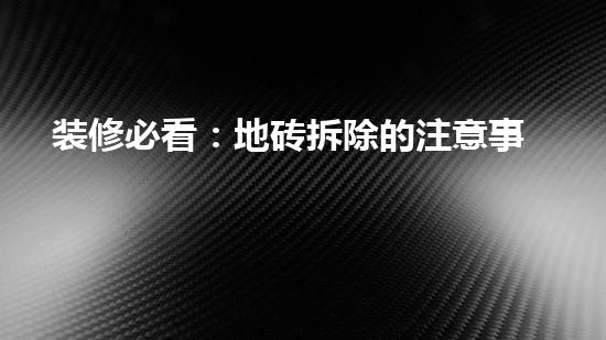 地砖拆除是装修前的一项必要工作,然而,人们常常忽略了周围环境和自身安全等重要问题。本文旨在为读者提供地砖拆除注意事项,并从专业角度详细阐述地砖拆除的步骤和安全问题等。