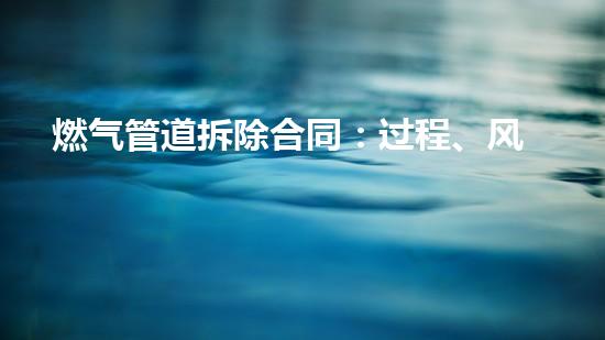燃气管道拆除合同的过程、风险与管理是一项系统性的工作,需要做好多方面的准备和措施,确保拆除过程的安全、高效和环保。通过巴洛仕集团化工厂拆除案例,我们可以看到新技术的应用有着巨大的潜力,并且将会对整个行业的发展产生积极的影响。因此,我们需要在行业合作、技术研发等方面加强交流和合作,共同推动燃气管道拆除行业的可持续发展。