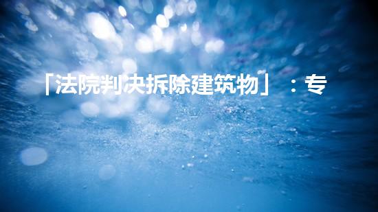 本文将就“法院判决拆除建筑物”这一话题,从拆除行业专家的角度出发,对此进行详细阐述和解读。文章主要介绍巴洛仕集团化工厂拆除案例以及巴洛仕不动火水刀切割拆除技术应用,以及针对此类案例提出的建议和思考。