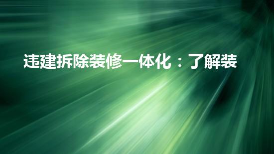 总之,违建拆除装修一体化服务将成为建筑行业未来的一个重要发展方向。这种服务不仅可以解决违章建筑问题,也可以为城市建设与发展作出更大的贡献。对此,企业应该切实履行社会责任,依法合规,适当降低拆除和修缮的成本,并增强其效益,同时确保环保和安全等核心问题得到妥善解决。最终,通过违建拆除装修一体化服务,我们可以实现城市建设的可持续发展,为人民提供更好的生活环境和生产条件。