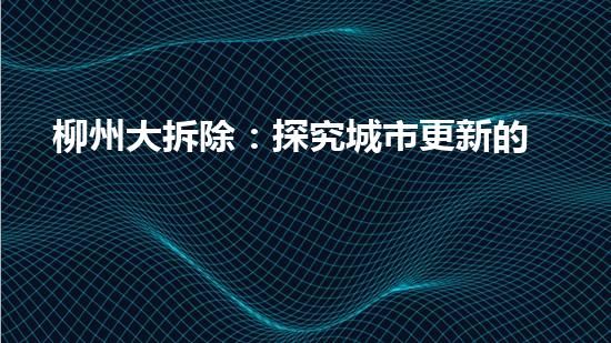 本文旨在介绍柳州大拆除:探究城市更新的成本和价值。随着城市的发展和人们对生活品质的提高,城市更新已经成为近年来一个备受关注的话题。柳州市作为一个典型的城市更新案例,通过大规模拆除旧城区的建筑,为城市的发展和现代化奠定了坚实基础。本文从拆除行业专家的角度出发,围绕着柳州大拆除的成本和价值展开详细的阐述和说明,并提出了自己的观点和看法。