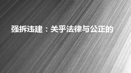 随着中国城市化进程加快,违规建设问题凸显出来。强拆违建已经成为城市管理中的常用方式,但在执行过程中却有诸多问题。本文从拆除行业专家角度出发,对强拆违建的法律与公正的追责之路进行详细的分析和探讨。主要从以下几个方面进行讨论:拆违政策的制定与实施、拆除程序的规范化、建筑评估与合法性、工程安全与环境保护、追责机制与公正监督。