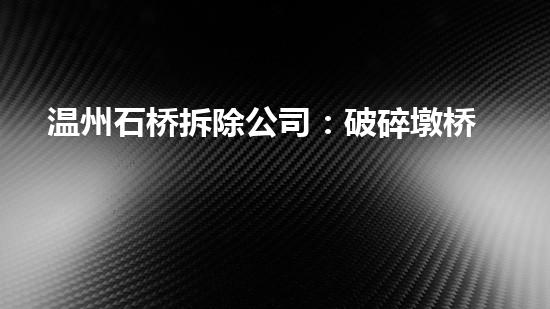 温州石桥拆除公司的项目“破碎墩桥,重塑美景”是针对城市道路上老旧或不符合规范的墩桥进行改造和拆除,旨在提升城市环境品质和交通安全。本文从化工技术专家的角度,对该项目进行详细的专业分析和阐述。