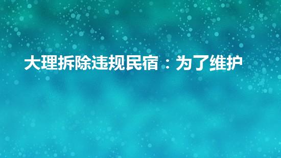 大理市加强对违规经营民宿的整治是旅游市场治理打出的一记重磅拳头。虽然一些商家对拆迁十分不满,但对于整个旅游市场、整个社会而言,这无疑是一个善举。未来,在整个市场更安全有序地发展的道路上,这将是一个非常有希望的基石。因此,我们要加强对整治工作的监督和支持,在推动整治工作的同时,同时要引导更多合法规范的经营方式和管理方式。