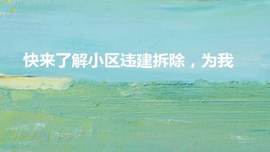 小区违建的拆除是一个复杂的过程,需要专业技术人员的支持和配合。化工专家可以提供拆除前的清洗置换,污泥减量化、废液处理和危废处理,以及环保施工技术等方面的支持和帮助,为拆除工作提供必要的保障和指导。我们应该加强对违建的管理和控制,让小区变得更加美好和干净。