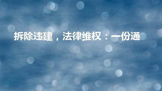 在这方面,拆除违建,法律维权:一份通知是一份非常重要的文件。该通知明确了在拆除违建时应该采取的合法和可行的措施,包括对违建的清理和处理、并规范了对病害房的拆除工作。