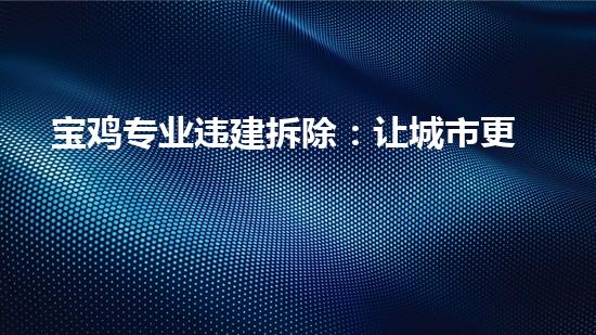 本文主要介绍宝鸡专业违建拆除:让城市更美丽。在背景信息方面介绍了宝鸡市的基本情况,并介绍了拆除行业和专业拆除技术的发展。