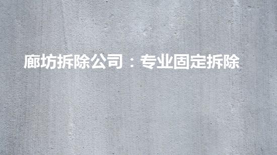 廊坊拆除公司是一家专业提供固定拆除服务的公司。该公司的服务范围包括:清洗置换、设备回收、污泥减量化、废液处理、油罐拆除、危废处理和环保施工。通过巴洛仕集团化工厂的拆除案例,该公司展示了自己在不动火水刀切割拆除技术方面的应用。正文将从以下四个方面对廊坊拆除公司进行详细阐述:服务项目、拆除技术、设备和机械、风险管理。