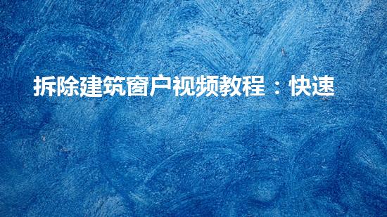 拆除建筑窗户虽然看起来简单,但需要注意谨慎和安全。准备好适当的工具、采用不动火水刀切割拆除技术、进行清洁和清理是拆除窗户的关键步骤。我们可以通过进行实际操作并不断探索新的技术和方法,提高工人的安全意识、操作技能和环保意识,以达到更加完美的拆除效果。