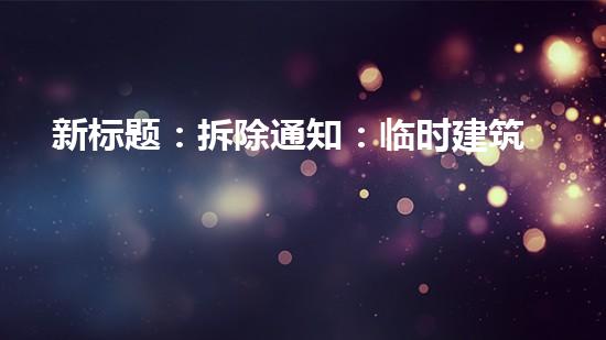 在这篇文章中,我们将阐述新标题“拆除通知:临时建筑安全清理”的意义,介绍背景信息,并从拆除行业专家的角度,详细阐述清理工作的几个方面。