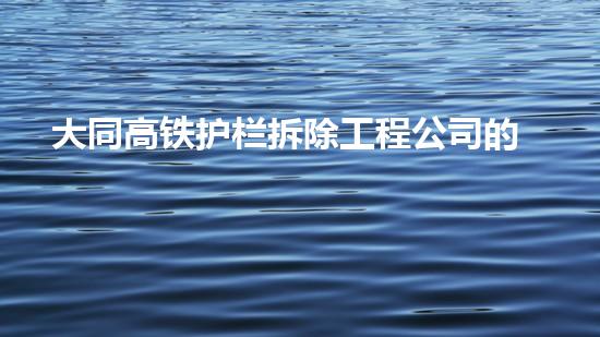 大同高铁护栏拆除工程公司以其独特的经营模式和成熟的技术,成为拆除行业的佼佼者,赢得了客户的信赖和尊重,也为拆除行业的发展做出了杰出的贡献。在未来,该公司应继续加强技术创新,提高服务质量,推动拆除行业的绿色发展。