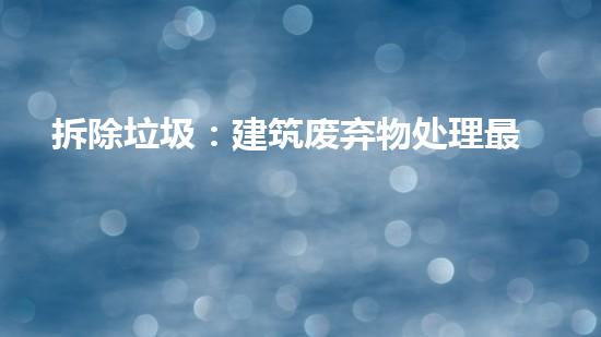在巴洛仕集团的案例中,我们可以看到,拆除垃圾:建筑废弃物处理最佳方法不仅要考虑生产效率,还要考虑环境影响和公共安全。建筑废弃物的清除、设备回收、废料处理和危险及特殊废料的规范处理是化工技术专家需要考虑的主要问题。我们相信,通过深入研究,可以发现更多关于拆除垃圾最佳方法的策略,并保证企业健康,社会利益和维护环境。
