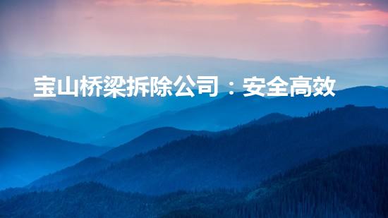 宝山桥梁拆除公司是一家专业从事桥梁、建筑物、厂房等大型建筑物拆除和爆破工程的企业。公司以安全高效、科技引领为核心,依托先进的技术和专业的团队,确保了工程的高质量交付。本文将从专业的角度出发,对宝山桥梁拆除公司的安全、高效和科技引领三个方面进行深入分析。