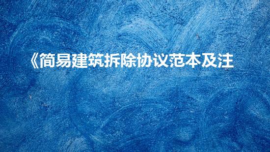 随着城市的发展,许多老旧建筑的拆除成为了一项必要之举,同时在拆除过程中也面临着不少的困难和挑战。《简易建筑拆除协议范本及注意事项》旨在为拆除行业提供一份权威且有指导性的文件,提高拆除工作的规范化水平,保障环境安全和工作效率。