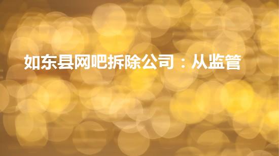 随着监管政策的不断加强和市场需求的变化,网吧业态转型成为趋势。如东县网吧拆除公司正是应运而生的企业,旨在通过网吧拆除和转型服务满足市场需求,同时承担环保责任。本文将从拆除行业专家的角度,探讨如东县网吧拆除公司的监管、市场、技术、环保四个方面的实践和经验,希望能够为同行业提供参考和借鉴。