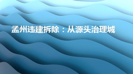 作为一名拆除行业专家,本文以孟州违建拆除为切入点,从源头治理城市规划乱象,深入探讨该问题。在介绍文章主要内容之前,先简单阐述一下背景信息。孟州是河南省安阳市下辖的一个县级市,随着城市化进程的加快,许多城市规划乱象开始浮出水面,尤其是违建现象异常严重,影响了城市的整体形象和市民的正常生活。针对此问题,本文提出要从源头治理城市规划乱象,拆除违建是必要的一步。