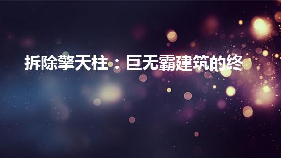 随着城市化进程的推进,高层建筑如擎天柱:巨无霸建筑越来越多,但这些建筑的拆除又面临着极大的挑战。本文将从拆除专家的角度,深入分析擎天柱:巨无霸建筑的拆除终结,探讨其挑战、成果和未来。
