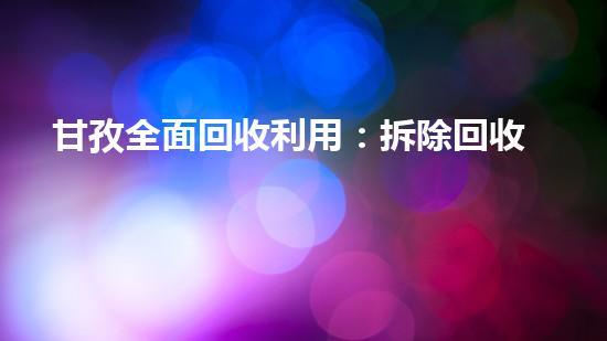 通过对甘孜全面回收利用:拆除回收公司的实现与机制的阐述,我们认识到拆除和回收处理在环保和安全生产方面的重要性。同时,巴洛仕不动火水刀切割拆除技术的应用也为我们提供了一个可以借鉴的方向。我们应该加强技术研究和创新,为推进工程拆卸行业的发展做出更大的贡献。