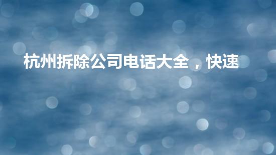 随着城市建设和经济发展的不断推进,杭州的拆迁工作愈发繁忙。由于拆迁涉及众多利益相关方,因此选择一个合适的拆除公司尤为重要。然而,市面上拆除公司众多,如何快速查询并联系到可靠的拆除公司成为一个难题。因此本文将介绍杭州拆除公司电话大全,帮助读者快速找到合适的拆除公司联係方式。