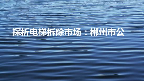 电梯拆除市场是当今社会不可避免的话题。本文将以郴州市公司的实践和思考为中心,对电梯拆除市场进行探析。在本文中,将从多个方面进行分析,以深入阐述该市场的真实情况,同时为读者提供背景信息。