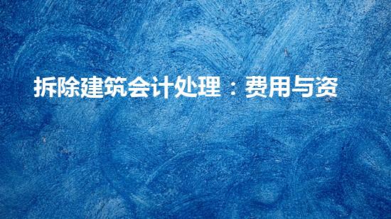 本文介绍拆除建筑会计处理:费用与资产处理策略。拆除建筑是一个涉及多个专业领域的复杂过程,其中包括费用和资产处理。本文从专业化的角度分析拆除建筑的会计处理问题,并提供一些有用的建议。文章的主要结构包括摘要、正文和结论,希望可以为读者提供一些有用的参考。