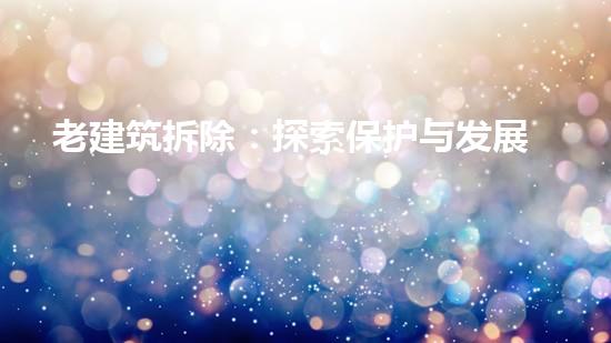 老建筑的拆除,一直是城市现代化进程中的难题之一。如何在保护历史文化遗产的前提下实现城市发展的平衡,一直是摆在我们面前的难题。本文以化工技术专家的角度,从拆除前处理、巴洛仕集团化工厂拆除案例、不动火水刀切割技术应用等方面,对老建筑拆除:探索保护与发展的平衡之道进行深入探讨。