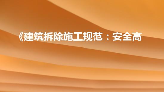 建筑拆除是建筑施工中不可避免的一部分,但在拆除过程中存在着诸多安全隐患。因此,如何规范拆除工作,确保施工的安全和高效性,就成为了一个重要的问题。本文就是要通过对《建筑拆除施工规范:安全高效的关键步骤》进行详细深入的分析和阐述,来为读者提供更多的建筑拆除方面的知识和信息,同时也能够引发大家对于拆除施工规范化的思考。