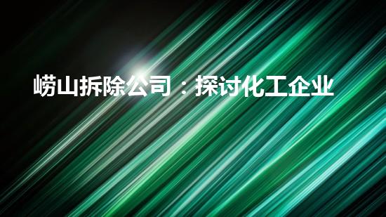 化工企业环保转型是我们日常应该关注的一个热点话题。本文围绕着崂山拆除公司,从清洗置换技术的应用、污泥减量化技术的实施、环保施工的重要性、未来需要关注的问题等多个角度进行了深入的阐述。我们认为,只有通过技术的升级和环保意识的提高,才能够推动长期的、可持续的、环境友好型的产业链发展。