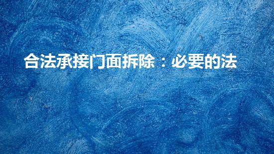 在门面拆除工作中,最重要的是严格遵守相关的法律法规,包括城市规划法、环境保护法、安全生产法等。此外,拆除公司必须获得相关行政部门颁发的拆除许可证,并严格按照许可证的要求进行拆除。同时,拆除过程中必须制定完备的安全措施和应急预案,确保拆除过程的安全和稳定。