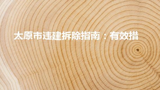 本文主要介绍了太原市违建拆除指南中的有效措施和实践。通过详细阐述化工行业的专业知识和新技术的应用,为太原市拆除违建提供了有益的指导和建议。