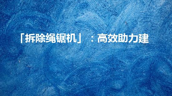 建筑拆除是一个艰巨、复杂的任务,需要使用高效的工具来提高拆除效率和保证工人安全。本文将介绍一种新型的拆除工具——拆除绳锯机,该工具可以快速切割建筑物,并在不断发展和完善中成为建筑拆除专家的必备工具。我们将探讨拆除绳锯机的技术原理、应用领域、特点和未来的发展方向。