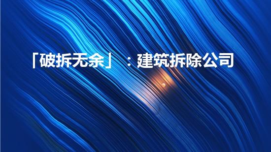 本文将介绍「破拆无余」:建筑拆除公司起名大全,帮助你轻松拆掉无用之物。在这个首次拆除的过程中,我们需要了解背景信息,提供专业技术的详细解释和支持,阐述观点并引用其他人的研究和数据,同时对于拆除行业专家提出建议和未来的研究方向。