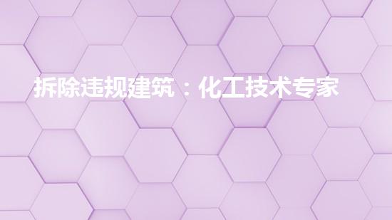 综上所述,化工技术专家在拆除违规建筑施工中发挥着重要作用,需要全面考虑拆除领域的具体问题和行业特点,注重细节和实践操作,在安全、环保和经济效益等方面取得平衡,为化工行业的可持续发展做出贡献。