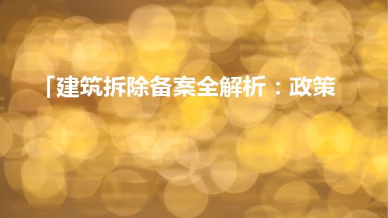 政策:建筑拆除政策的制定需要考虑建筑的年代、地理位置和用途等方面。政府会根据不同需求和地区制定不同的政策。例如,为了保护古建筑和历史文化遗产,政府将对这些建筑进行更加谨慎的拆除。