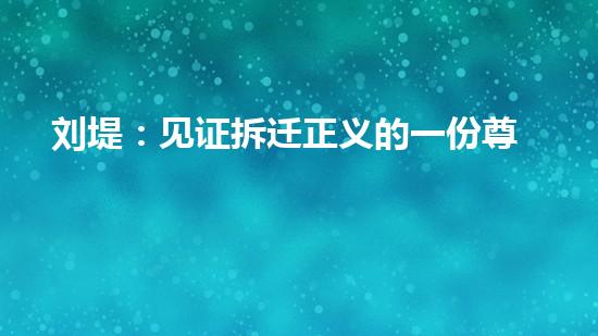 “刘堤:见证拆迁正义的一份尊严”是一篇关于中国拆迁领域的深刻报道,旨在展示一个拥有拆除行业专业知识和丰富实践经验的化工技术专家,对于拆迁全过程中的关键环节所做出的真正贡献。这篇文章将围绕着这个主题展开深入探讨。