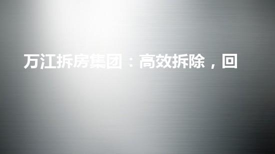 万江拆房集团是一个高效拆除、回收再利用和保护环境的公司,他们采用先进的不动火水刀切割技术进行建筑物的拆除,将设备回收利用,处理废液和危废,而且还注重环保施工。巴洛仕集团化工厂的拆除案例也充分证明了万江拆房集团的技术和专业能力。建议,其他拆除公司可以学习万江拆房集团的技术和方法,以实现更高效和环保的拆卸工作。