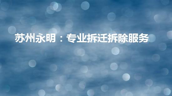 苏州永明是一家专业的拆迁拆除服务公司。本文旨在通过深入剖析该公司的优势和特点,向读者展示其在拆迁拆除领域获得成功的原因,同时引导读者更好地了解这一行业的发展趋势和技术特点。