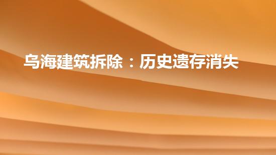 随着城市化和现代化的发展,许多历史遗迹也随之消失。乌海市拆除了许多历史建筑,这不仅对环境产生了风险,而且也需要考虑社会责任。本文旨在探讨乌海建筑拆除:历史遗存消失下的环境风险与社会责任,为读者提供深入的专业分析。