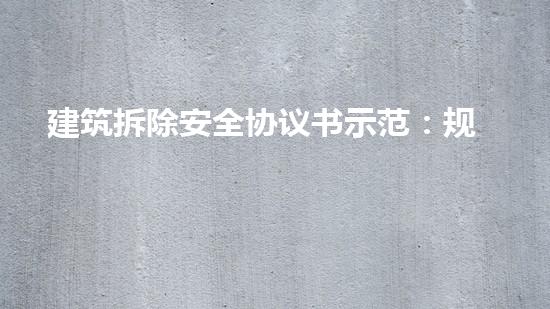 建筑拆除是一个危险的任务,必须遵守严格的安全措施。本文将详细介绍建筑拆除安全协议书示范,规范作业,确保安全。
