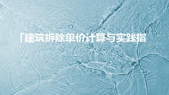 本文主题为《建筑拆除单价计算与实践指南》的详细讲解,介绍了拆除行业的专业知识和相关背景信息,为读者提供了有用的技术指导。文章围绕着计算拆除单价、拆除工作前的准备、拆除技术的应用、污染物的管理与处理、回收利用拆除材料等多个方面展开,为读者提供了较为全面的了解。