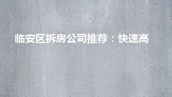 本文介绍临安区拆房公司推荐:快速高效的拆除服务,通过详细阐述公司的优势和专业技术,为读者提供背景信息,引起读者的兴趣。文章主要从四个方面进行分析,包括公司的拆除方案、拆除设备、环保施工和危废处理等方面。