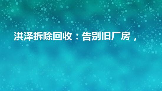 推土机的轰鸣,大概是都市更新最直接的背景音。在洪泽,任何一座经历产业变迁的县城,你总能听到这种——老旧的纺织厂、闲置的化工厂、废弃的,正在被逐一推倒。但很少有人停下来想,地狼藉的钢筋混凝土、锈蚀的钢架、砖烂瓦,最终都去了哪里?是简单地填埋还是另有去处?这背后,其实藏着一门不小的,甚至可以说,拆除的结束,才是资源循环真正的启动## 拆,不是一锤子买卖